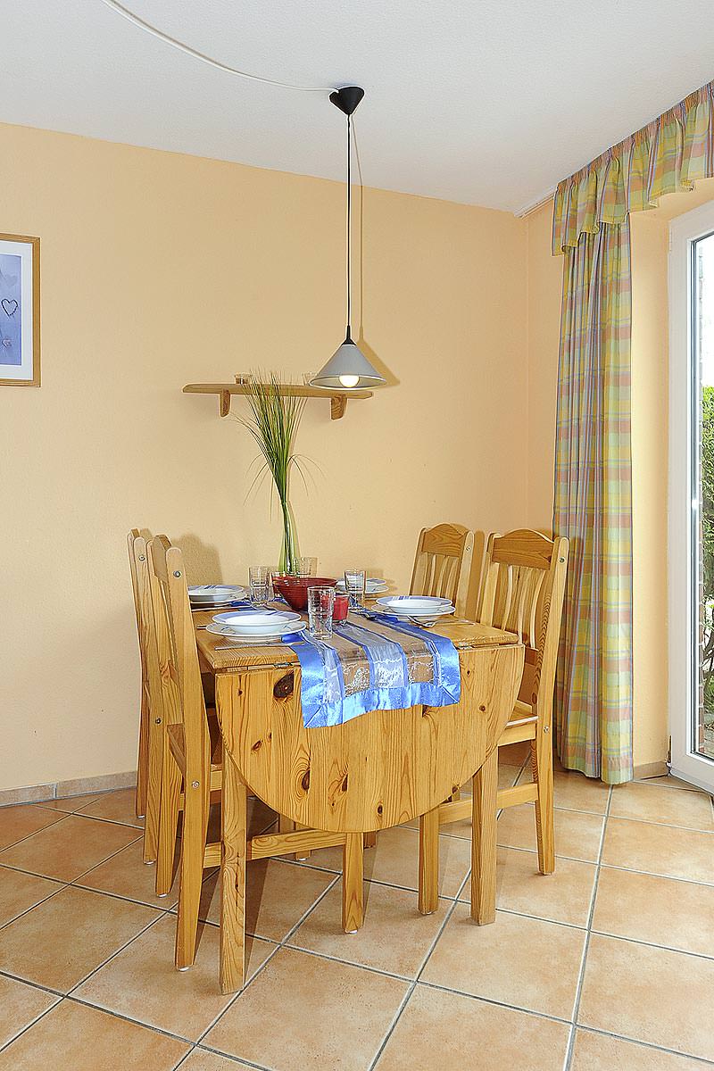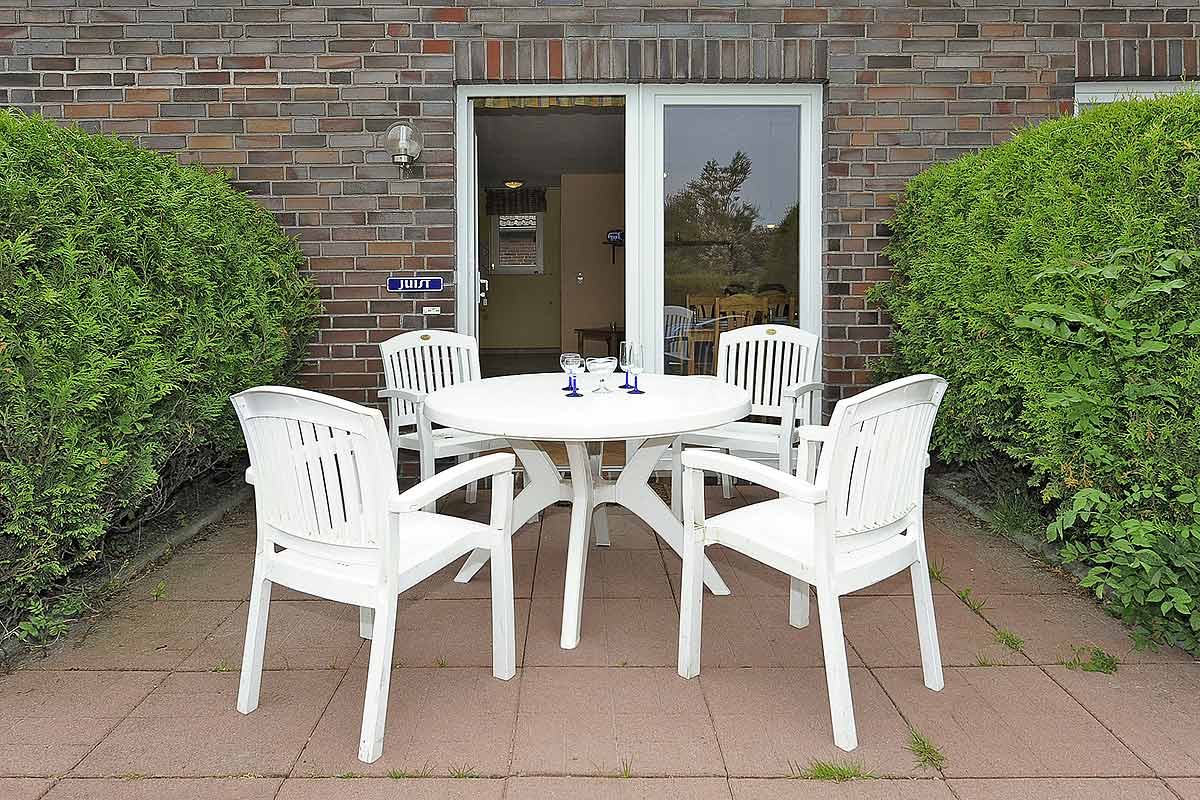 Die Wohnung befindet sich im Erdgeschoss und bietet eine gemütliche Terrasse für die entspannten Stunden. Die Schlafzimmer sind im 1. Obergeschoss. Diese Ferienwohnung ist idealerweise für 2 bis 5 Personen und ein Kleinkind geeignet.
